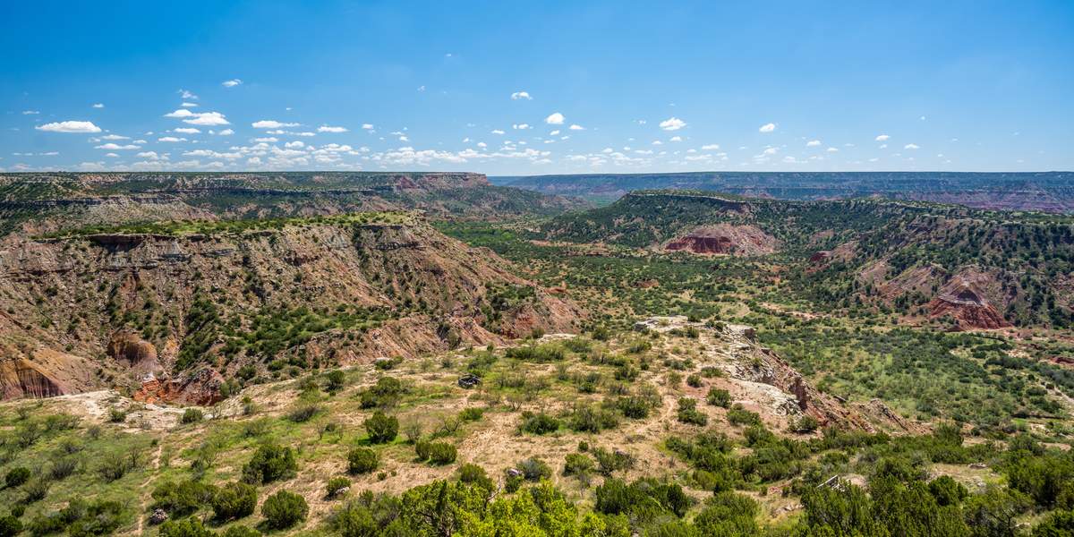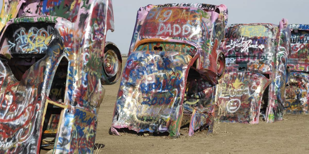 Con una atractiva mezcla de herencia del Viejo Oeste y energía artística, Amarillo, situada en pleno corazón de la Ruta 66 y envuelta entre nostalgia y naturaleza, es un lugar imprescindible para los fanáticos de la mítica carretera madre, donde podrán revivir sus días de gloria en el distrito histórico, cuyos edificios originales con aires del Oeste han dado paso a galerías de arte, tiendas de antigüedades y restaurantes. El famoso Cadillac Ranch, con sus diez Cadillac clásicos semienterrados, es una visita obligada. También puedes disfrutar de espectáculos de vaqueros profesionales durante eventos como el Coors Cowboy Club Cattle Drive o en cualquiera de las muchas celebraciones anuales de la ciudad. Y, para completar la experiencia, la imponente torre rocosa de tonos oxidados del Parque Estatal Palo Duro Canyon, icono natural de Amarillo, ofrece una vista espectacular que no querrás perderte.