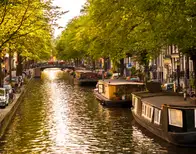 También llamada la Venecia del norte, los canales de esta ciudad superan los 100 kilómetros y sus puentes ascienden a más de mil. La parte histórica está rodeada por los cuatro canales más importantes, y que son el Prinsengracht, Singel, Keizersgracht y Herengracht. En la zona de este último es donde se encuentran las casas de mayor tamaño, que son también las más bonitas. Otros puntos de interés en esta parte de la ciudad son las dancing houses, y los puentes de Kassmarktsluis y de Staalmeestersburg, con vistas a la iglesia Zuiderkerk. Los museos son otro de los grandes atractivos, como el de la Casa de Anna Frank, en el barrio de Jordaan; el de Van Gogh, con la colección más importante del mundo del pintor holandés; el Rijksmuseum o Museo Nacional y el Moco Museum. Otros lugares de interés son la plaza Leidseplein, con multitud de terrazas, cafés y muestras de arte callejero, o la plaza Dam, que es la que mayor ambiente tiene.