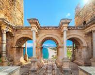 Los lugares de mayor interés durante la visita son la Puerta de Adriano, un arco del triunfo fabricado en mármol y que se construyó en su honor en el 130 d.C., y hoy separa la parte antigua de la ciudad de la moderna; la Torre del reloj, la única que queda de un total de 80; el minarete Yivli minare, de 40 metros de altura; el Museo de Suna e Inan Kiraç kaleiçi; el Kesik minare, un minarete añadido a una mezquita que en sus orígenes fue un templo romano convertido en iglesia bizantina; la mansión Antalya Kültür Evi, y el puerto deportivo, en el que abundan las tiendas y los restaurantes donde probar la gastronomía local. La ciudad también cuenta con algunas playas, como Mermerli, donde el poco espacio que hay de costa está ocupado por tumbonas.