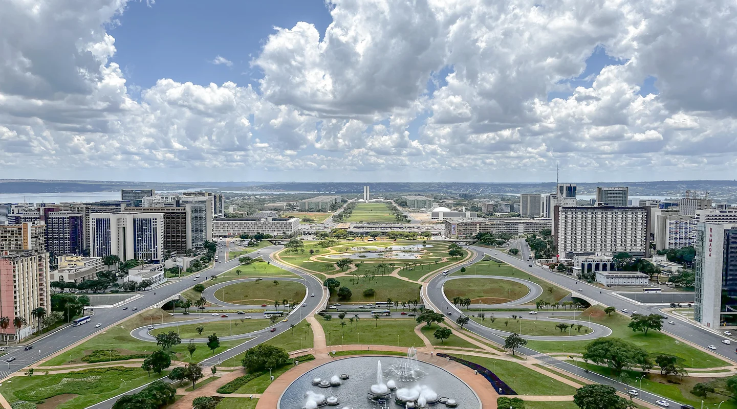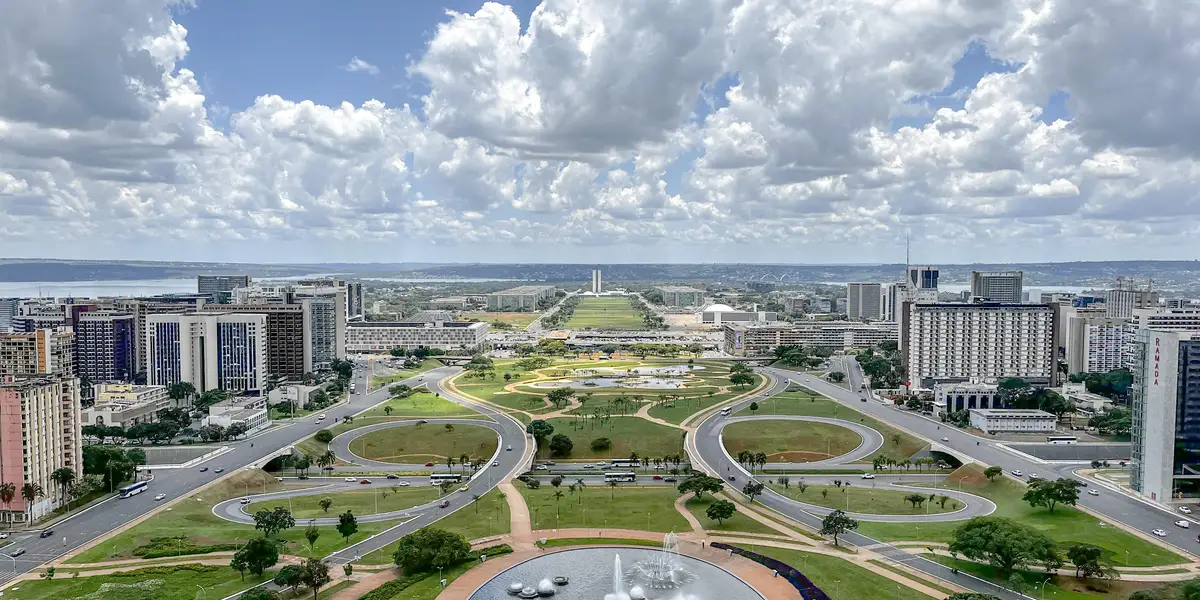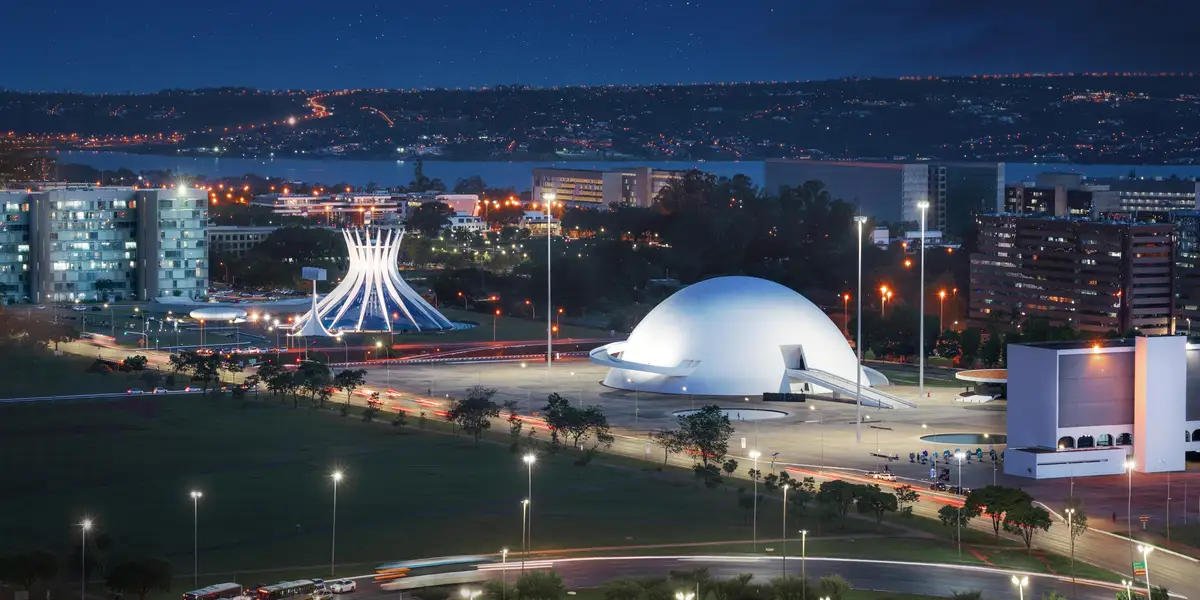 Esta metrópoli, se diseñó en forma de avión, con el Eje Monumental a modo de cabina de fuselaje rematado por la Plaza de los Tres Poderes como si se tratara de la cabina de los pilotos, y el resto de la trama urbana desplegándose a ambos lados en forma de alas. Con colinas onduladas y un paisaje generalmente llano, esta moderna ciudad cuenta con emblemáticos edificios blancos de arquitectura moderna, concebidos principalmente por Oscar Niemeyer.