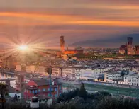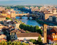 Junto a ella, se encuentra el Campanile de Giotto, que te ofrecerá excelentes panorámicas desde sus más de 80 metros de altura. El tercer tesoro de la Plaza del Duomo es el Battistero di San Giovanni, con forma octogonal y puertas de bronce. Otra plaza concurrida es la della Signoria, cerca del Mercato Nuovo y con casas que datan del siglo XIII. Allí también verás la Logia dei Langi, con las estatuas de Perseo y del Rapto de las Sabinas, o el Palazzo Vecchio, con la Fuente de Neptuno, la estatua de Hércules y una réplica del David de Miguel Ángel, porque el auténtico está en la Galería de la Academia. Otras esculturas imperdibles son El nacimiento de Venus, de Botticelli, o La Anunciación de Da Vinci, ambas en la Galería Uffizi. Otros lugares interesantes en Florencia son la Iglesia de Santa Croce, el fotogénico puente medieval Ponte Vecchio, los jardines de Boboli o el Piazzale Michelangelo, con excelentes panorámicas de toda la ciudad.