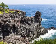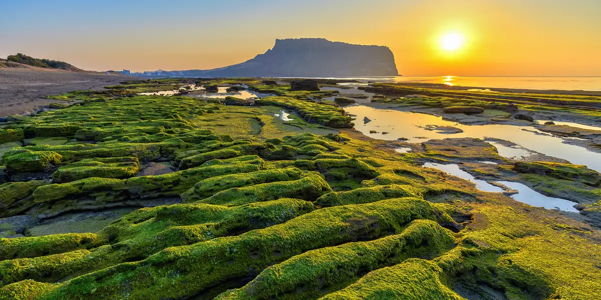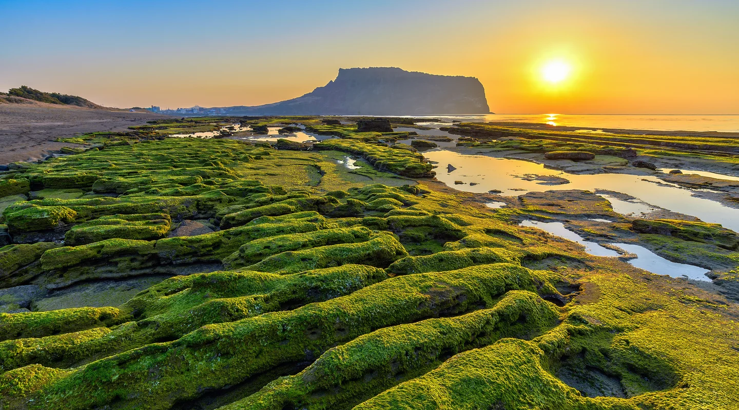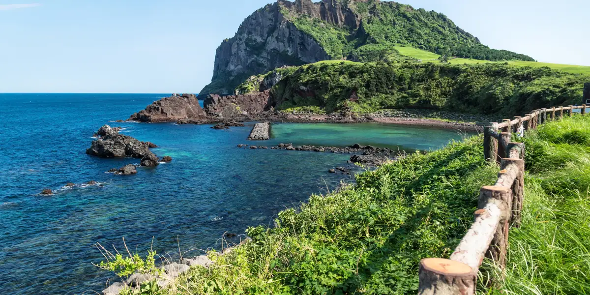 Tiene dos pequeñas ciudades, Seogwipo y Jeju City, que cuentan con todo tipo de servicios y alojamiento. Una de las grandes atracciones naturales de esta isla es el Seongsan Ilchulbong, un monte en forma de cono al que es tradición subir para ver amanecer. También hay otros senderos y excursiones interesantes, como el Parque Nacional de Hallasan, la visita a las columnas de roca de Daepo Jusangjeolli Cliff , la ruta de las cascadas o un recorrido por el tubo de lava Manjanggul, una cueva volcánica donde viven más de 3.000 murciélagos. Además, la costa de la isla está salpicada de playas vírgenes, muchas de ellas perfectas para practicar surf. Para acceder a Jeju hay que volar desde Seúl, aunque también se puede hacer el trayecto en ferry.