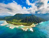 En la costa de Na Pali, al noreste de la isla, están los acantilados más fotogénicos y cinematográficos, con una altura que supera los mil metros y que se pueden contemplar de cerca a bordo de un barco. Otra visita obligada es el Cañón de Waimea, con 15 km de longitud y una profundidad de mil metros. En la parte sur o South Shore, está la reconocida playa Poipu Beach Park y diversos centros históricos. Para los amantes de los deportes de aventuram en la isla de Kauai se puede hacer kayak por el río Wailua, deslizarse por los valles de colores o hacer senderismo en el Kokee State Park a lo largo de sus 72 kilómetros. Y en Lihue, el centro comercial de la isla, y más concretamente en Kalapaki Beach, se puede practicar surf y remo.