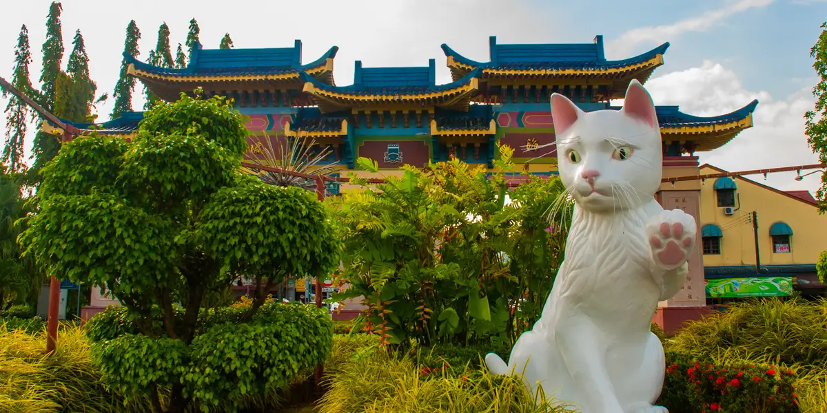 Pero además de gatos, también abundan los tomates y los parques nacionales, en los que las especies más llamativas son los orangutanes y los monos narigudos. El mejor lugar para verlos es el Centro de Vida Silvestre de Semenggoh. Dentro de la flora, destacan sus orquídeas, las plantas carnívoras y la flor rafflesia, que además de ser la más grande del mundo, es la que peor huele. Donde más abunda es en el Parque Nacional Gunung Gading, que cuenta también con rutas de senderismo y cascadas en las que darse un baño. Otro lugar interesante es el Parque Nacional Bako, con varios senderos por la selva, y cascadas en las que es posible darse un baño. Y si hay suerte, en el río Santubong, a unos 40 km de Kuching, se pueden ver delfines rosa o irrawaddy, en peligro de extinción, así como cocodrilos.