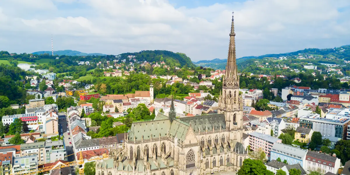 También son interesantes la Casa Brucknerhaus y el edificio Lentos Kunstmuseum, cuya fachada se vuelve multicolor de noche; podrás descubrirlos paseando a orillas del Danubio. También allí está el Mural Harbor, la mayor galería de grafitis del mundo, que podrás ver en los edificios industriales de la zona. Si te gustan los museos, también te gustará el Schlossmuseum, ubicado en un castillo que además tiene bonitas vistas desde la terraza. Y ya que mencionamos las vistas, dirígete al Pöstlingberg, un monte al que se llega en ferrocarril y que te permitirá disfrutar de la zona desde las alturas.
