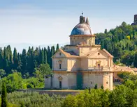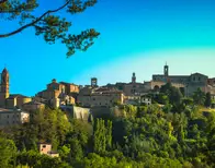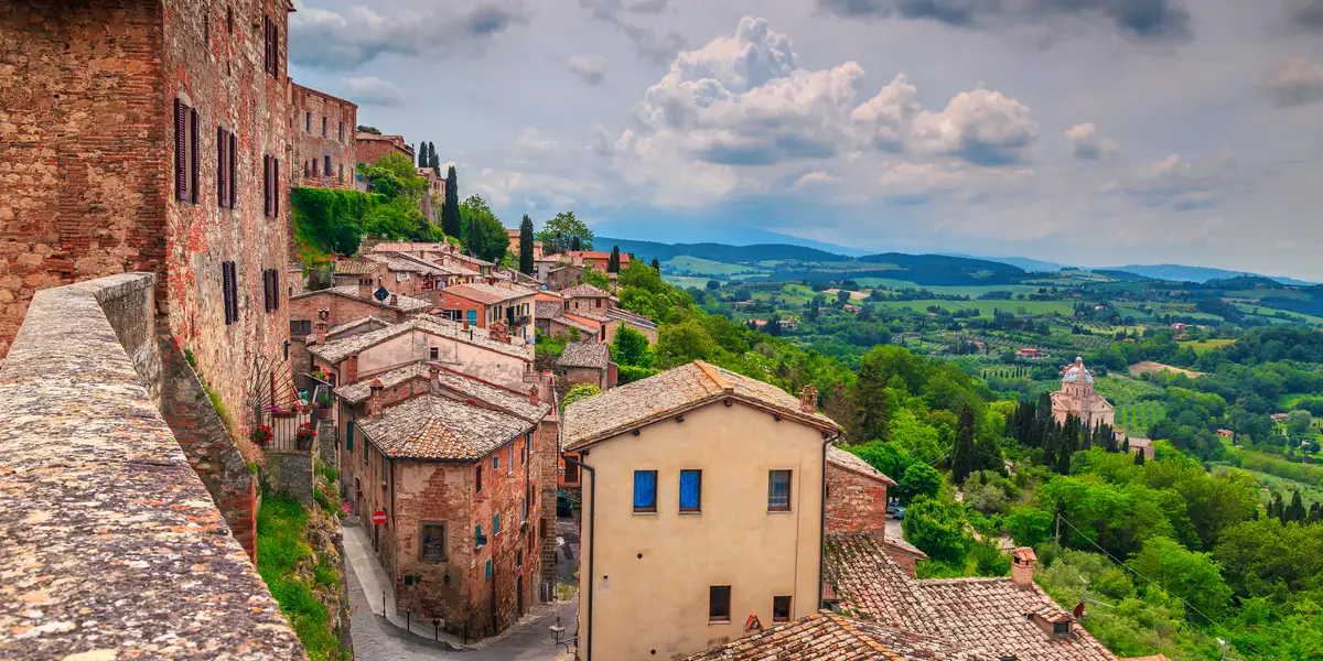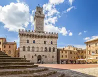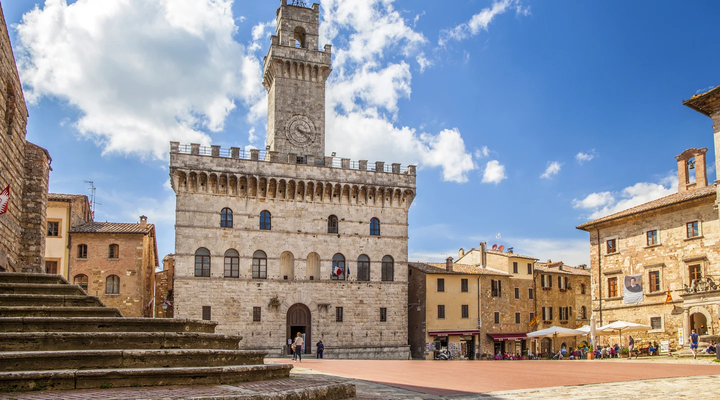 Está protegida por una muralla, en cuyo interior se encuentra su casco histórico de origen etrusco, con calles estrechas y suelos adoquinados de estilo medieval. En ellas, se pueden contemplar multitud de palacios y de iglesias de estilo renacentista. Por todas ellas, Montepulciano ha sido considerada como la perla del Cinquecento, ya que pertenecen al siglo XVI. En la Piazza Grande se encuentran el Duomo, cuya construcción nunca se completó, y el Palazzo Comunale, un lugar que ha salido en múltiples producciones cinematográficas, como Crepúsculo. Desde lo alto de la torre de dicho Palazzo, se pueden obtener unas espléndidas panorámicas de la ciudad, del monte y de la provincia. Pero además de monumentos históricos, las bodegas son otro de los atractivos de esta localidad, ya que aquí se fabrican los mejores vinos de la Toscana, que han recibido la Denominación de Origen. Una tradición que también se remonta a la Edad Media.