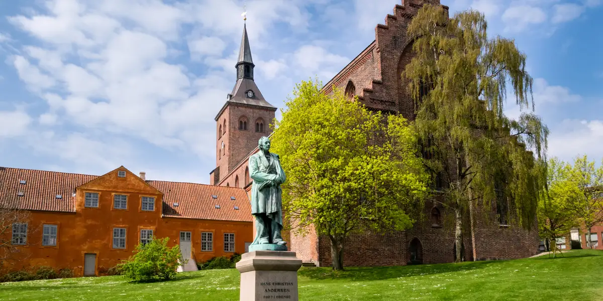 H. C. Andersens Hus. Esta casa-museo es un sitio ideal que visitar en Odense para conocer la vida y obra del escritor Hans Christian Andersen. En el museo podrás ver los enseres personales del escritor, así como sus ropas, cuadernos de notas, caretas, etc... La exposición sobre curiosidades expone las diferentes ediciones de sus obras y sus 156 cuentos. Catedral San Knud. La catedral de Odense hace referencia a San Canuto, un rey vikingo asesinado mientras rezaba junto a su hermano y otros soldados. Después de todo lo relacionado con el escritor H.C. Andersen, este edificio es uno de los lugares más interesantes que visitar en Odense. El edificio de estilo gótico no siempre fue así, el estilo que vemos hoy en día pertenece a una reconstrucción que se hizo en el año 1247 sobre las ruinas de una catedral anterior de piedra, después de un incendio durante la guerra civil entre Eric IV y su hermano Abel. Entre las cosas que visitar en la Catedral se encuentran los restos del Rey Knud y los restos de la antigua catedral situados en la cripta. También destaca su órgano y un retablo de madera. Museo del Ferrocarril. Este museo dedicado a la historia del ferrocarril en Dinamarca es una de las cosas que visitar en Odense para ir con niños. En este museo podrás visitar antiguas dependencias de la estación de tren, viejas locomotoras y vagones de época. H.C. Andersens Haven. Este parque se encuentra detrás de la Catedral de San Knud y la plaza del Ayuntamiento. Este jardín se sitúa en el centro de la ciudad y está repleto de esculturas dedicadas al autor, pérgolas, y maravillosos puentes. Además también verás una pequeña muralla china que le da un aire exótico, un entorno de tranquilidad ideal para hacer un picnic.