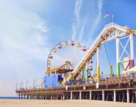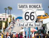 Desde practicar surf en sus célebres playas hasta disfrutar de todo tipo de actividades al aire libre, Santa Mónica es un lugar ideal para los amantes del deporte y del océano. Su principal atracción es el famoso muelle de Santa Mónica, con su emblemática noria que se alza sobre las olas e ilumina el cielo por la noche. En Pacific Palisades encontrarás las casas situadas en los acantilados. Si buscas un hermoso paseo junto a la playa, el Palisades Park es perfecto, y en el centro de la ciudad descubrirás esculturas de todo tipo, un jardín de rosas y un mirador desde el que contemplar paisajes impresionantes. Santa Mónica también destaca por su escena artística, con numerosas galerías y más de 170 murales públicos. Por último, junto al muelle se encuentra el cartel que marca el final de la legendaria carretera estadounidense Ruta 66.