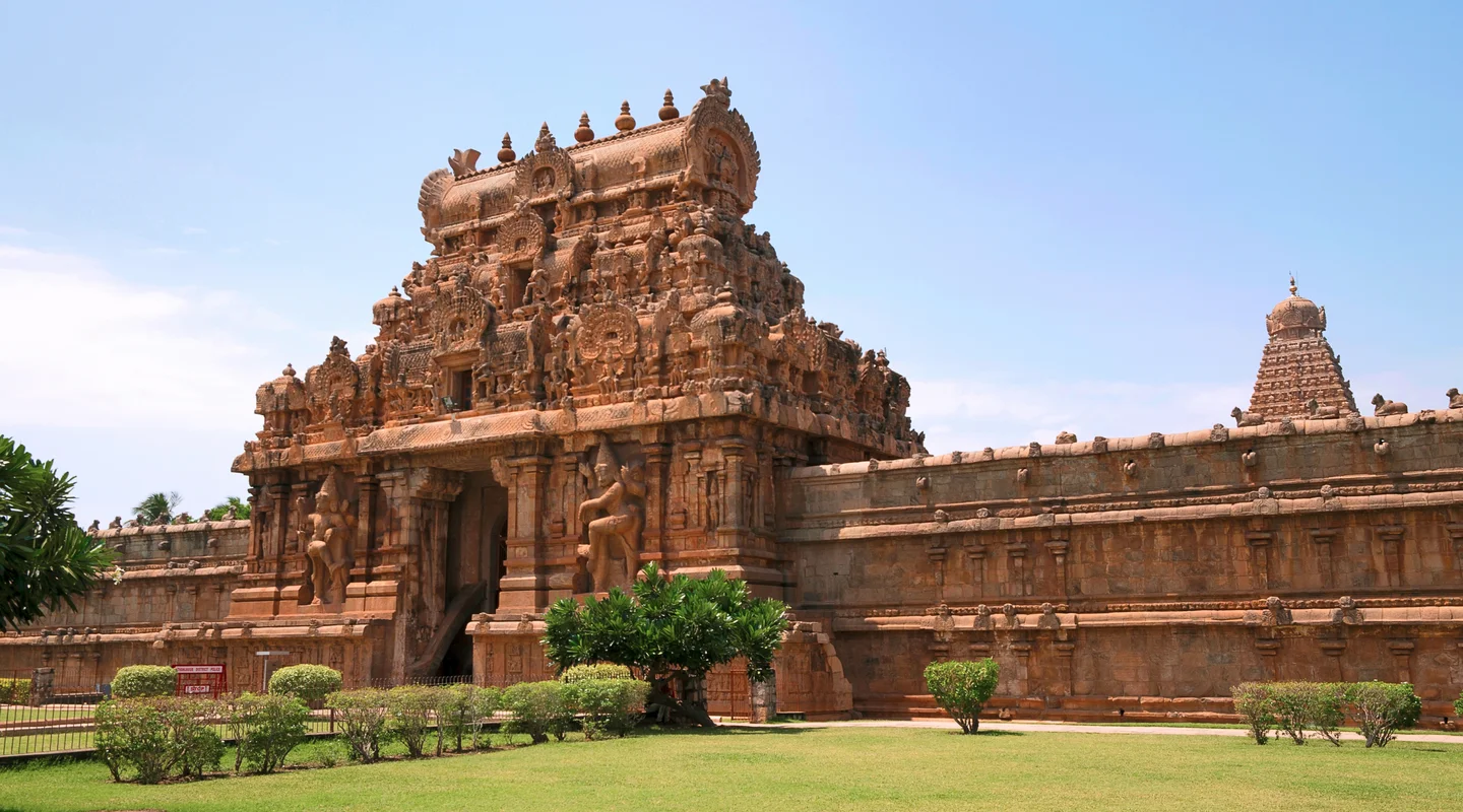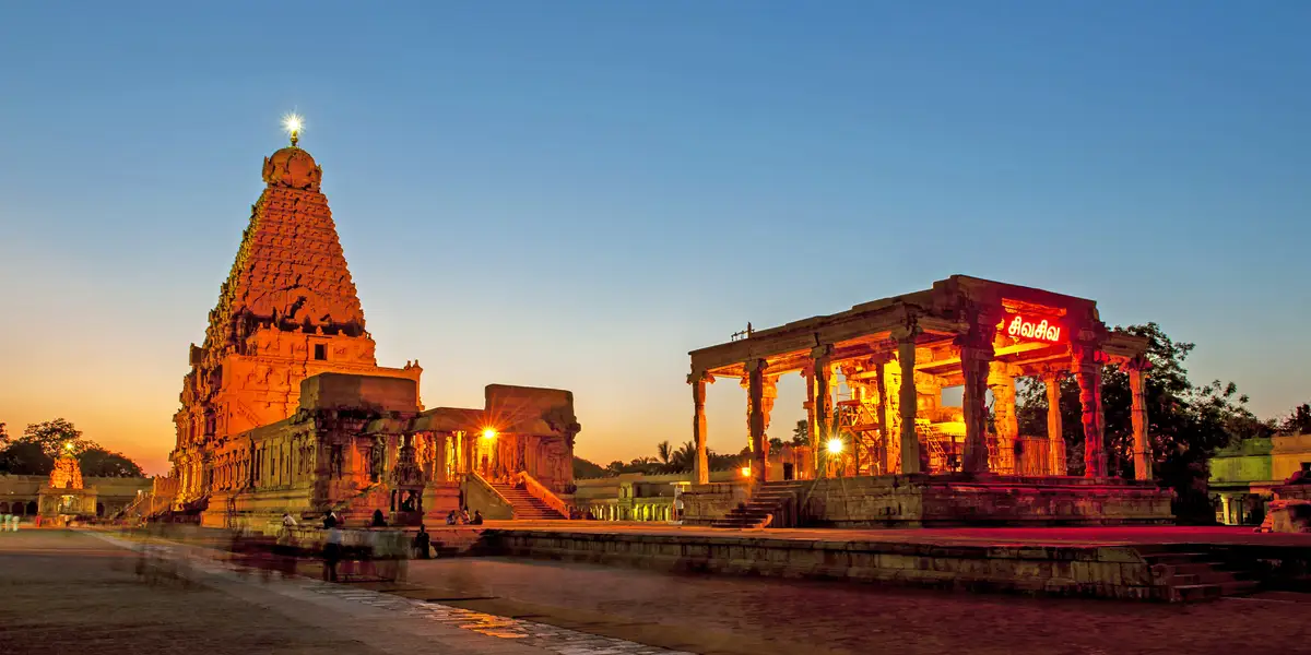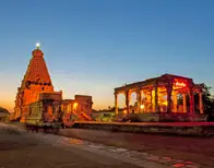 El templo de Brihadisvara es uno de los más grandes del estado, y está dedicado al dios Shiva. Fue construido con granito y ladrillo en el año 1010 durante la dinastía Chola. Destacan sus fachadas repletas de figuras y esculturas talladas con todo detalle. El otro templo es el Palacio Real de Tanjore, que fue construido en 1550 por la dinastía Nayak. Su interior hoy día es un museo donde se exponen distintas obras de arte de la dinastía Chola. Cuenta con una colección de bronces muy importantes en la historia del arte. Hay más templos de la dinastía Chola en las proximidades, como el Templo de Airavatesvara en Darasuram o el templo de Brihadishvara en Gangaikonda Cholapuram. La orfebrería está muy desarrollada en Tanjore, y se pueden visitar varios talleres para ver trabajar a los artesanos.